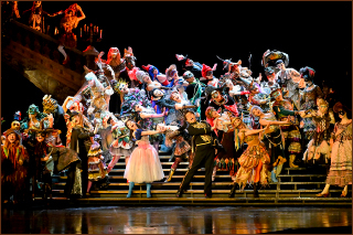 震える彼女のか細い手を握り、愛を告白するラウル。そして二人は将来を誓い、くちづけを交わします。クリスティーヌの可憐な歌声とラウルの若さと自信溢れる熱い歌声が重なり合い、パリの夜風が満点の星空へと運んでいきます。