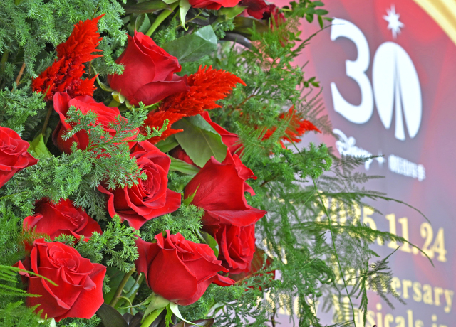 大きな節目を迎えたこの日、劇場ロビーには初演から30年を祝うたくさんのバラの花が。さらに、当日ご来場いただいたお客様に手渡された、バラの花びらがあしらわれたバルーン が会場を彩り、お祝いムードが高まります。