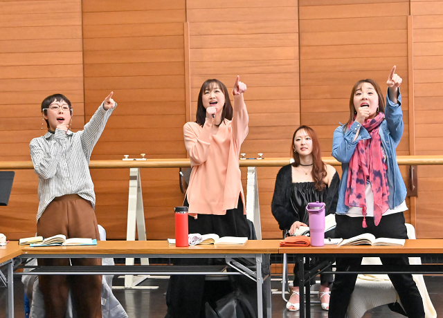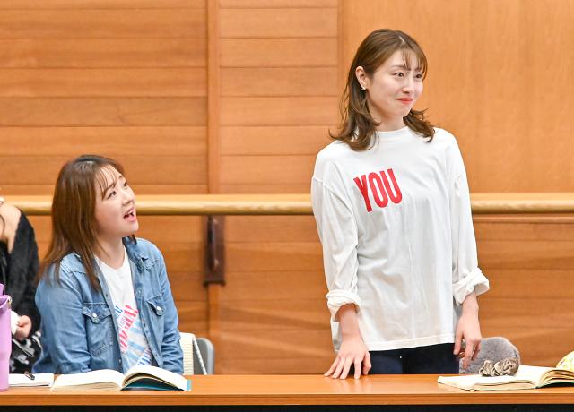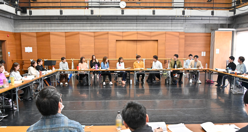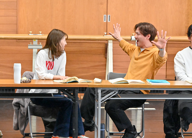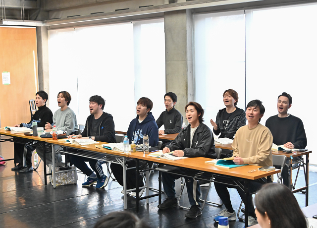 稽古終了後、レジデント・ディレクターの山下純輝が「他人の人生を生きることは難しいこと」「人は多面的です。明るさの奥には傷があり、悩みがあっても一生懸命生きている。皆さんが演じるのは、キャラクターではなく"人"なんです。そう思いながら稽古をしましょう」と語りかけると、俳優たちは意識を新たにするようにうなずきました。