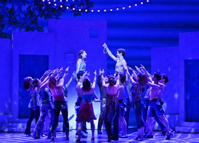 迎えた初日公演。ABBAの音楽が客席中に響き渡ると、舞台は一気にギリシャ・エーゲ海の小島へ――。