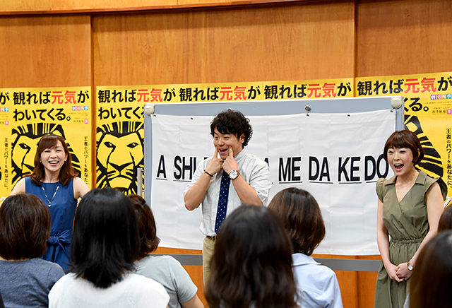 2016年度「こころの劇場」の特別協賛企業であり、日頃より劇団四季の社会貢献活動を支えてくださっているキヤノン株式会社では、7月より「ワーク・ライフ・バランス推進期間」として"ゆう活"を実施。この日も"ゆう活"の一環として、『ライオンキング』夜公演のご観劇とともに、開演前の時間を利用した『美しい―』に多くの社員の皆さんが参加されました。